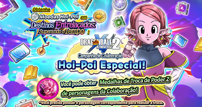 Um evento especial em colaboração com DRAGON BALL XENOVERSE 2, com uma história exclusiva que você só pode aproveitar aqui!Ao avançar a história da colaboração até o final, serão liberadas fases em que você pode obter Moedas Hoi-Poi e novos Fragmentos Únicos!
