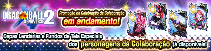 Chegaram 4 tipos de pacotes de itens em comemoração à colaboração entre Dragon Ball Legends e DRAGON BALL XENOVERSE 2!Você poderá adquirir conjuntos especiais com Capas Lendárias, Fundos de Tela, Títulos e Mensagens inspirados nos personagens da Colaboração, além de itens úteis para o desenvolvimento dos personagens!